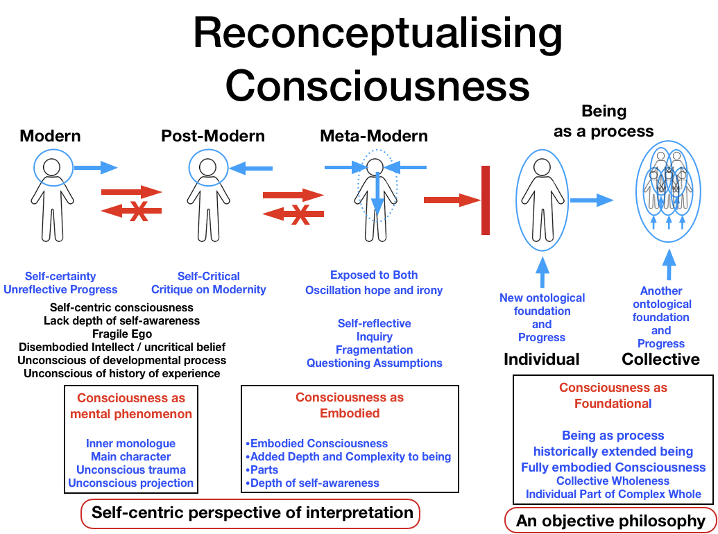 Metamodernity is a self-reflective stage in an ongoing process; rejecting modernity, embracing complexity, becoming more conscious, becoming more collectively self-aware, and conscious of the failings, and unsustainability of modernity.